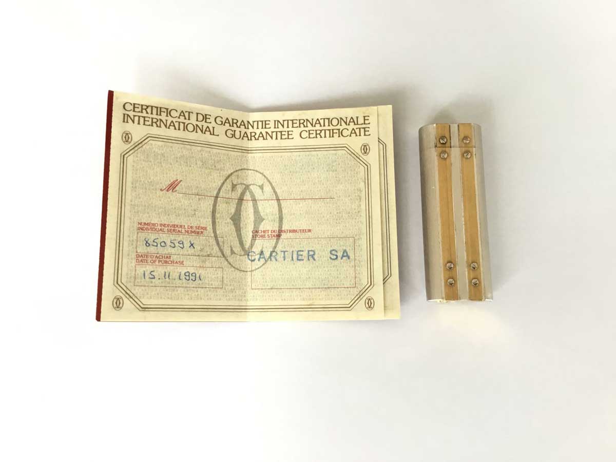 Magnifique briquet Cartier Santos avec certificat, fonctionnel, hauteur: 7cm.
