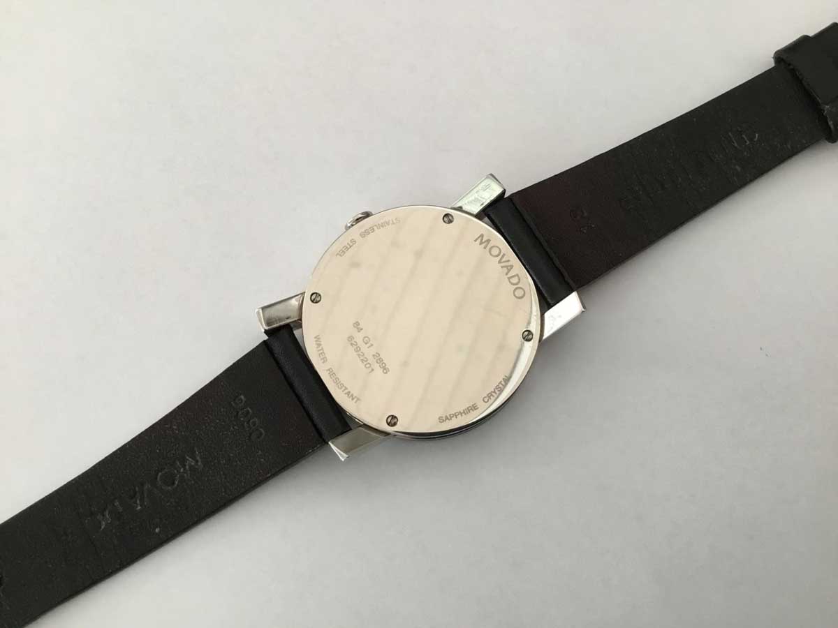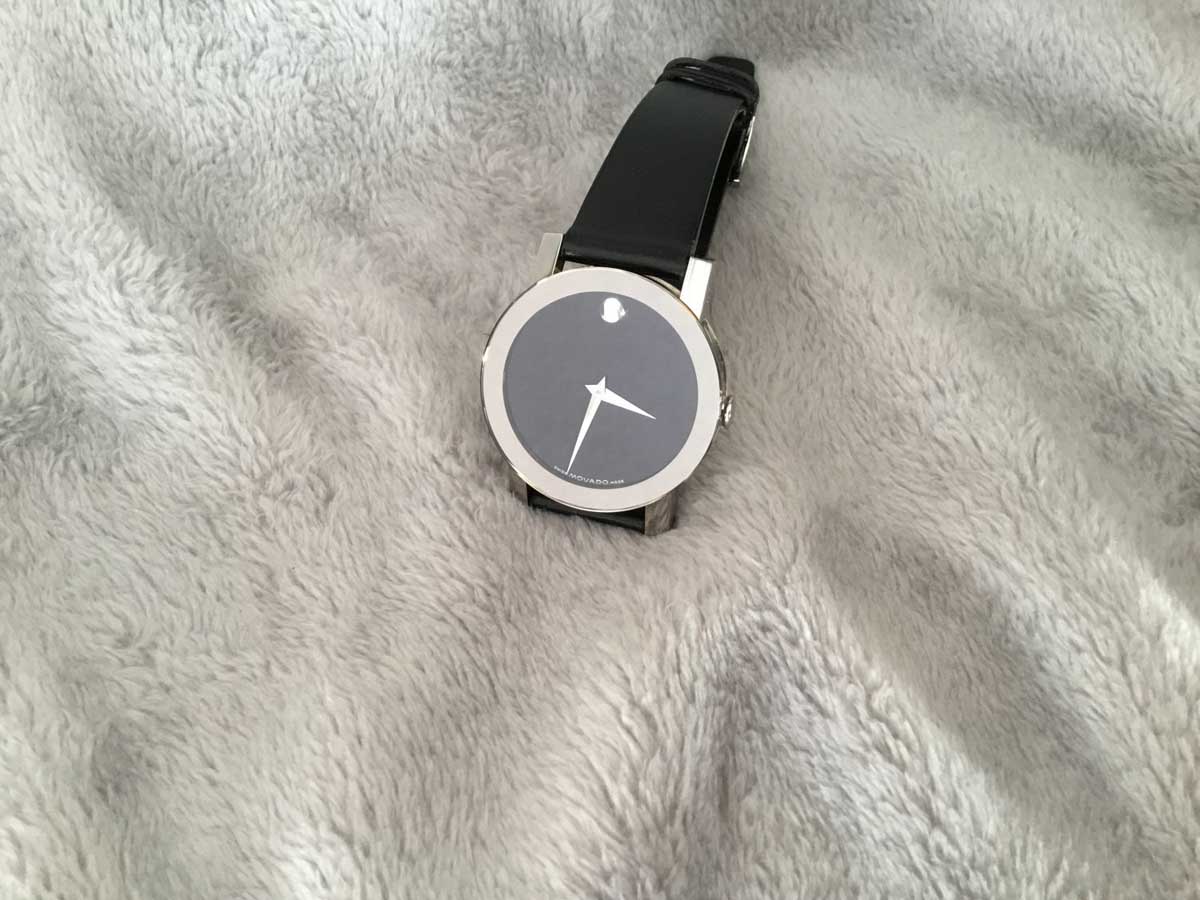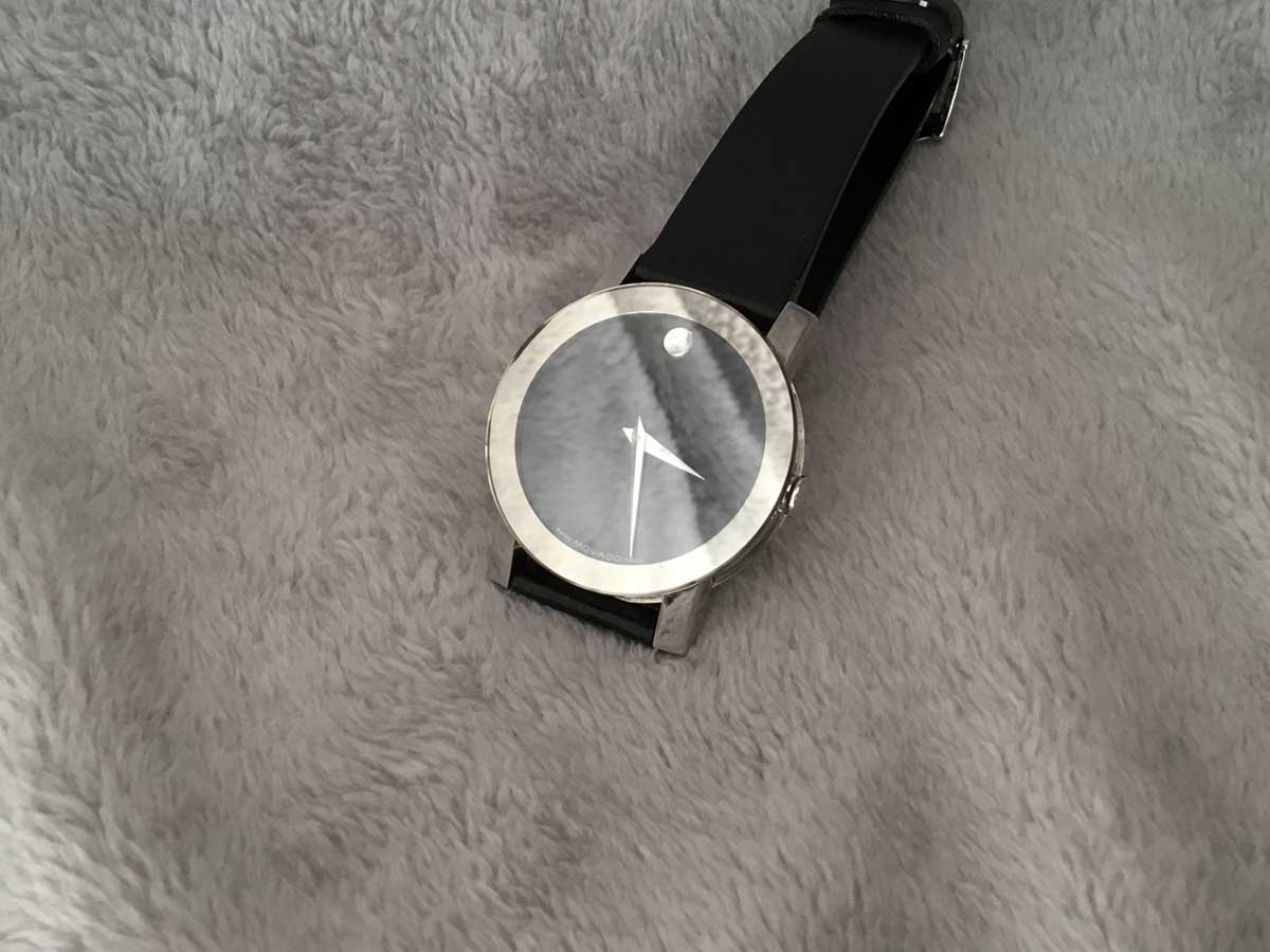 Jolie montre bracelet Movado avec boîte et facture originale, pile neuve, fonctionne, diamètre 35mm.