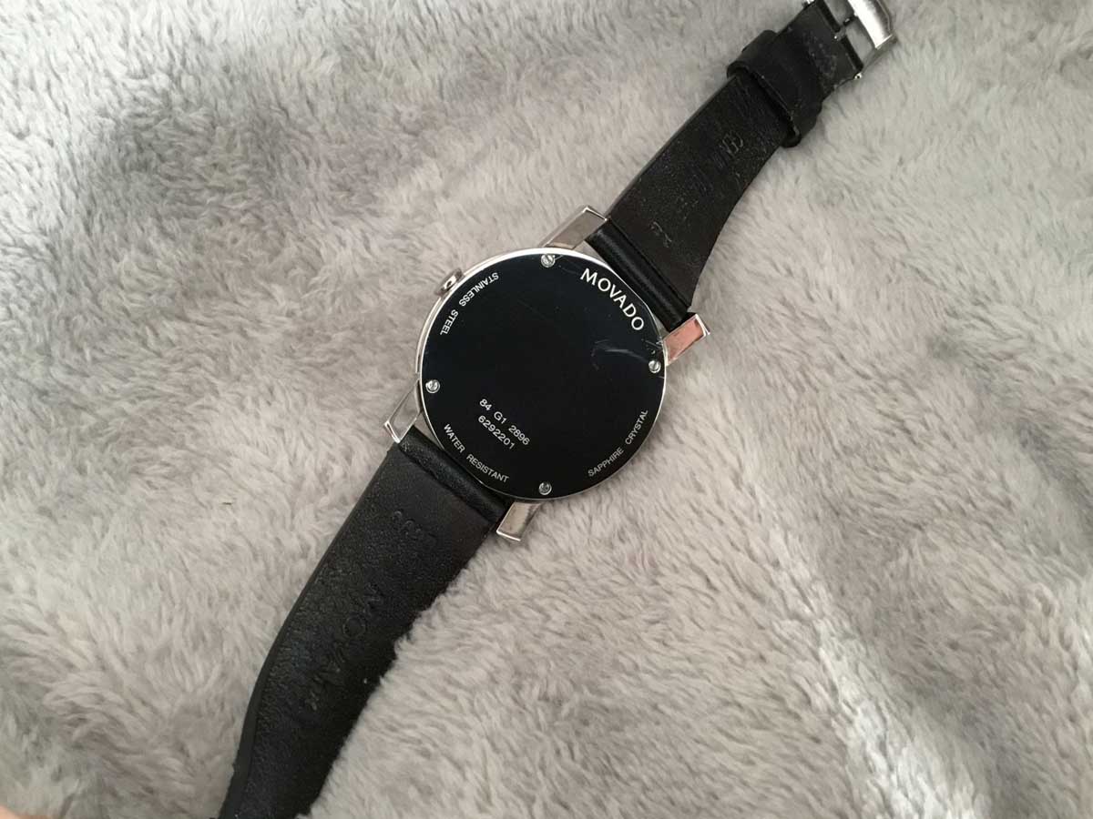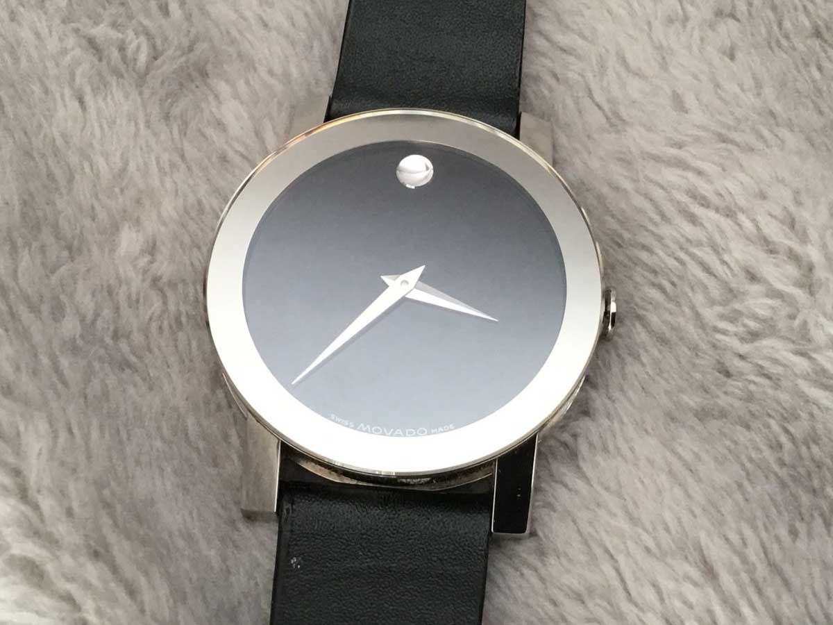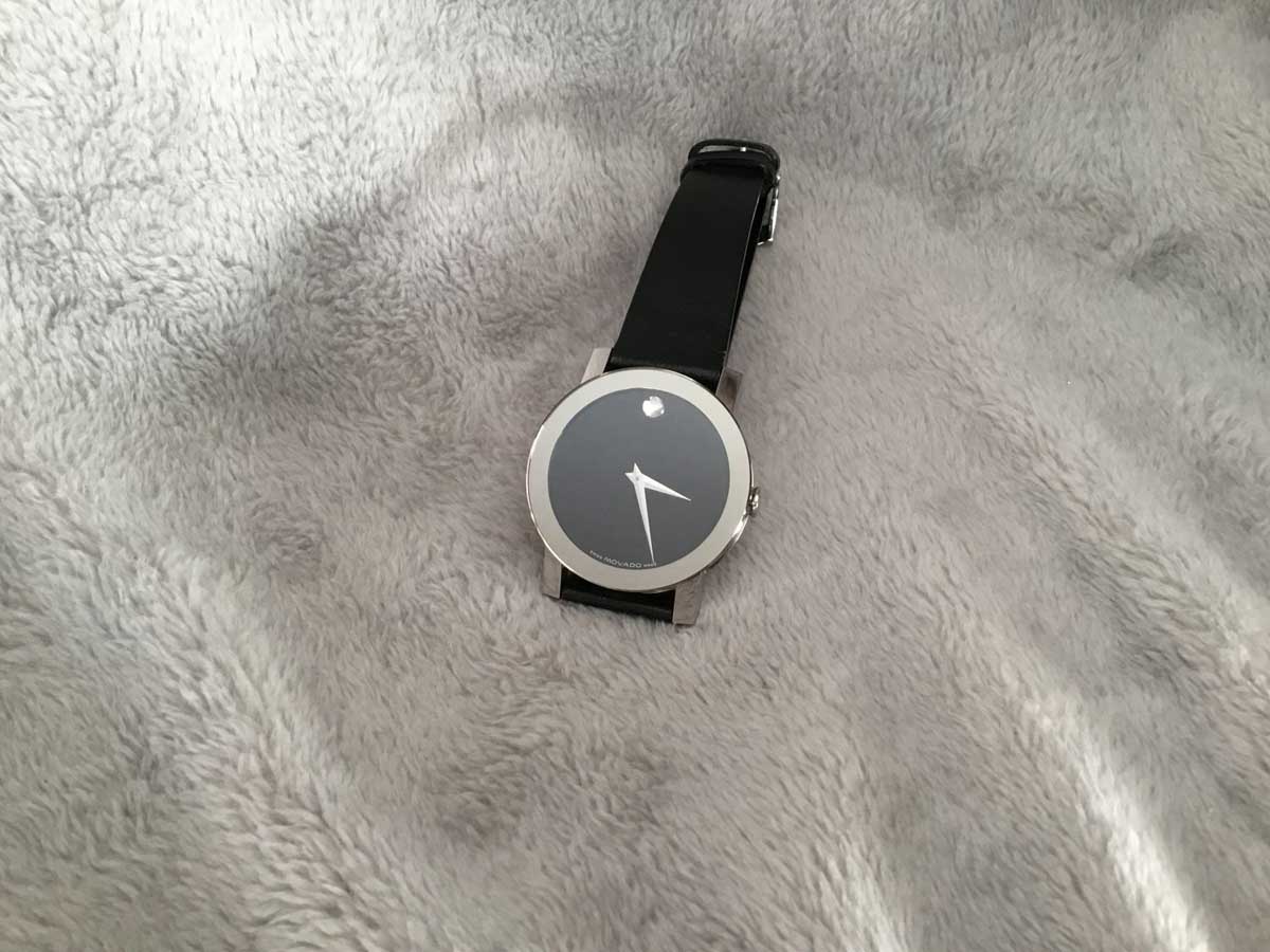 Jolie montre bracelet Movado avec boîte et facture originale, pile neuve, fonctionne, diamètre 35mm.