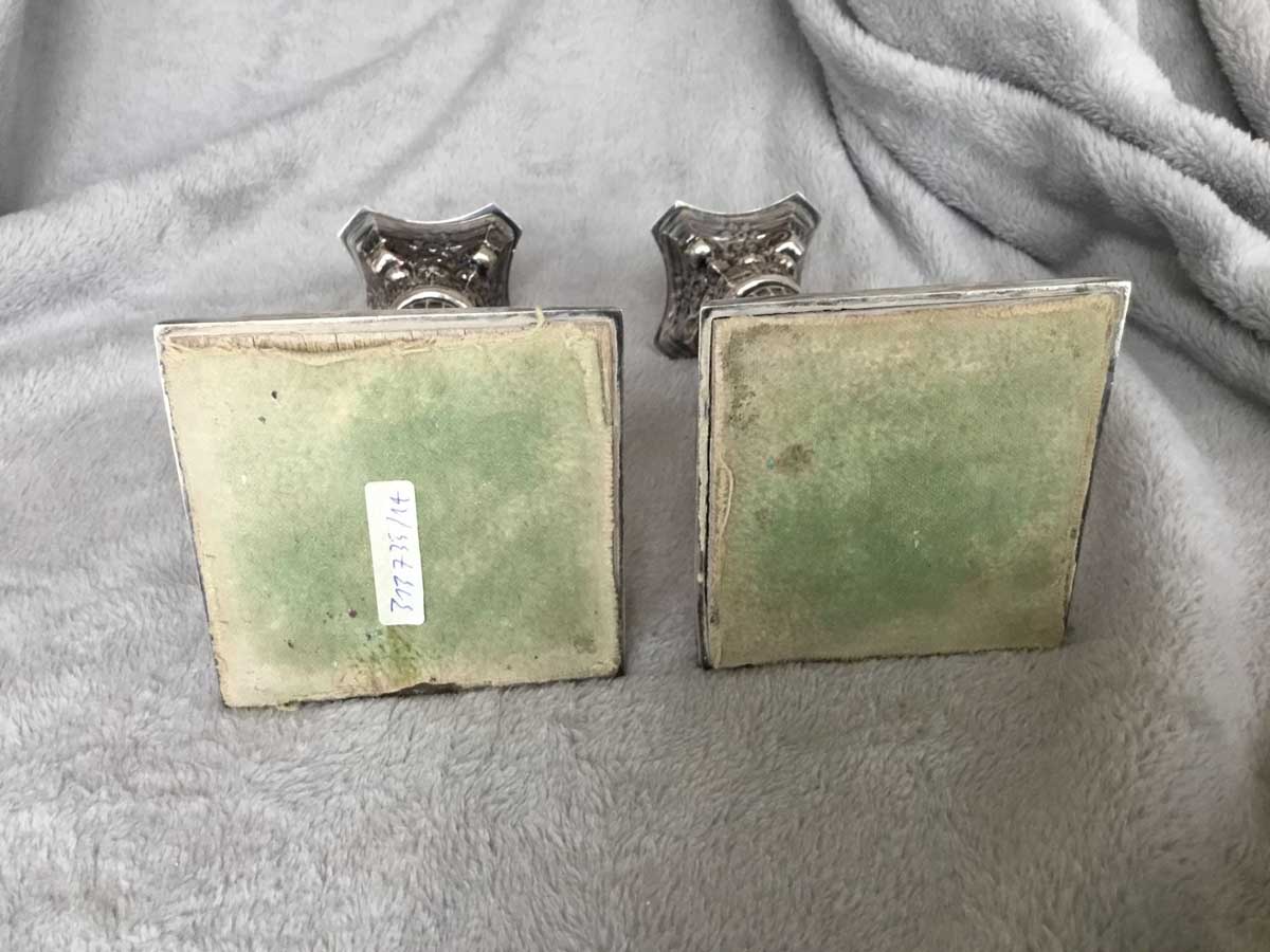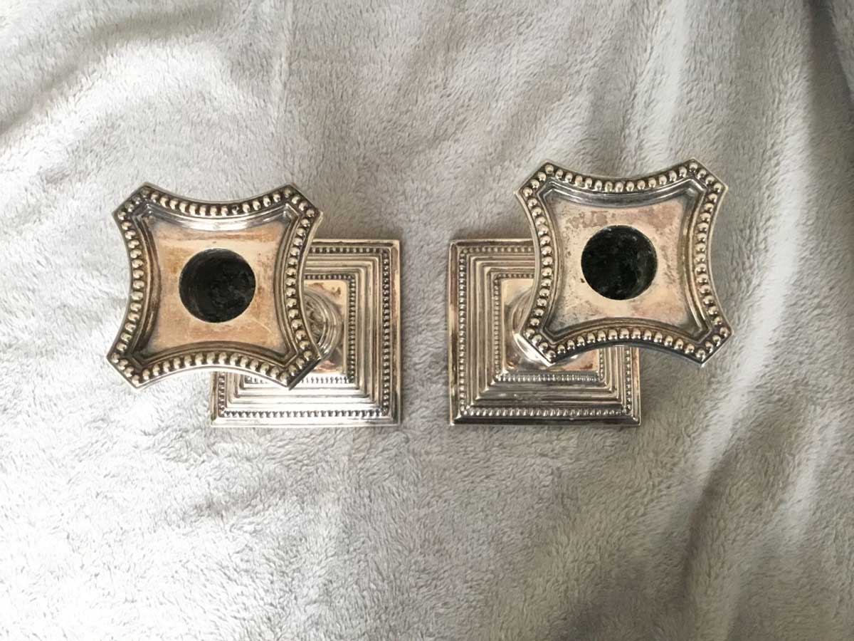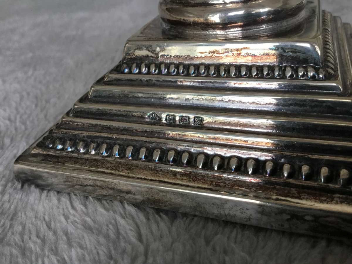 Superbe paire de chandeliers en argent, provenance Angleterre, hauteur: 16cm.