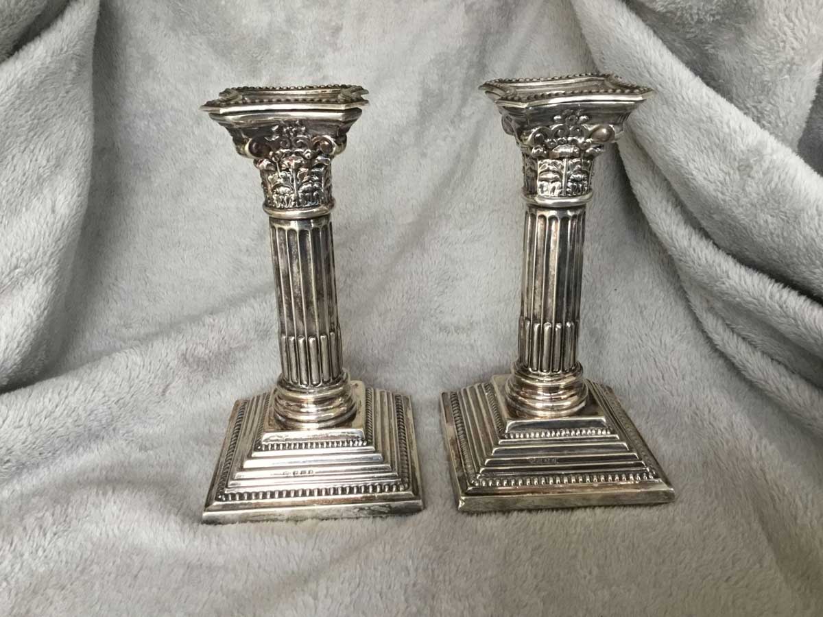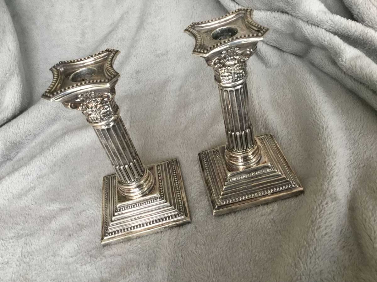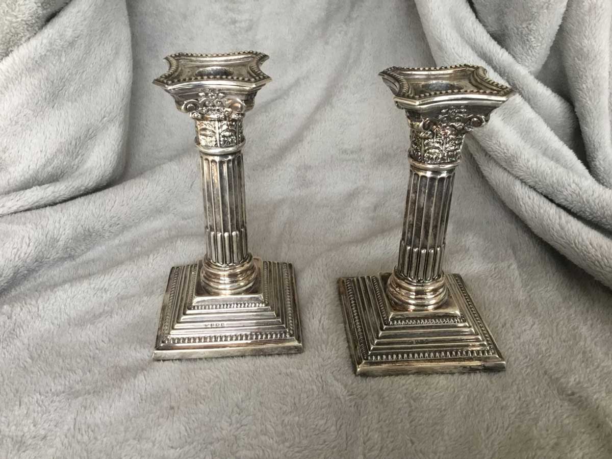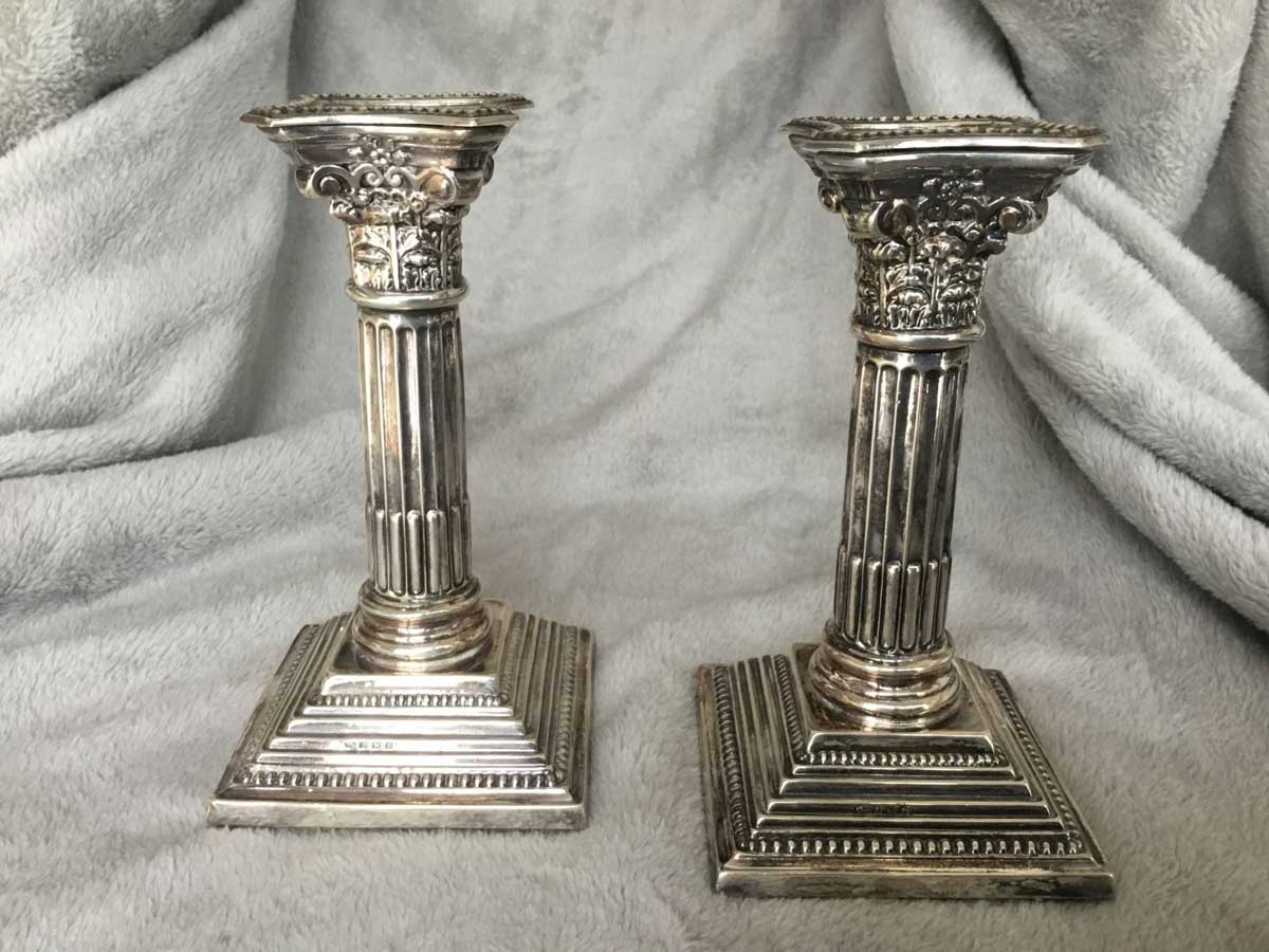 Superbe paire de chandeliers en argent, provenance Angleterre, hauteur: 16cm.